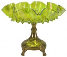 Aufsatzschale, Schale auf Fuß, Glas, Metallfuß, Jugendstil, D: 26 cm