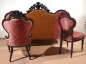 Startseite » Antiquitäten Kunst » Mobilar » Sofa & Stühle » Historismus Set: Sofa, 2 Sessel, 4 Stühle, Fussbank, Regal, Nussbaum ~1870