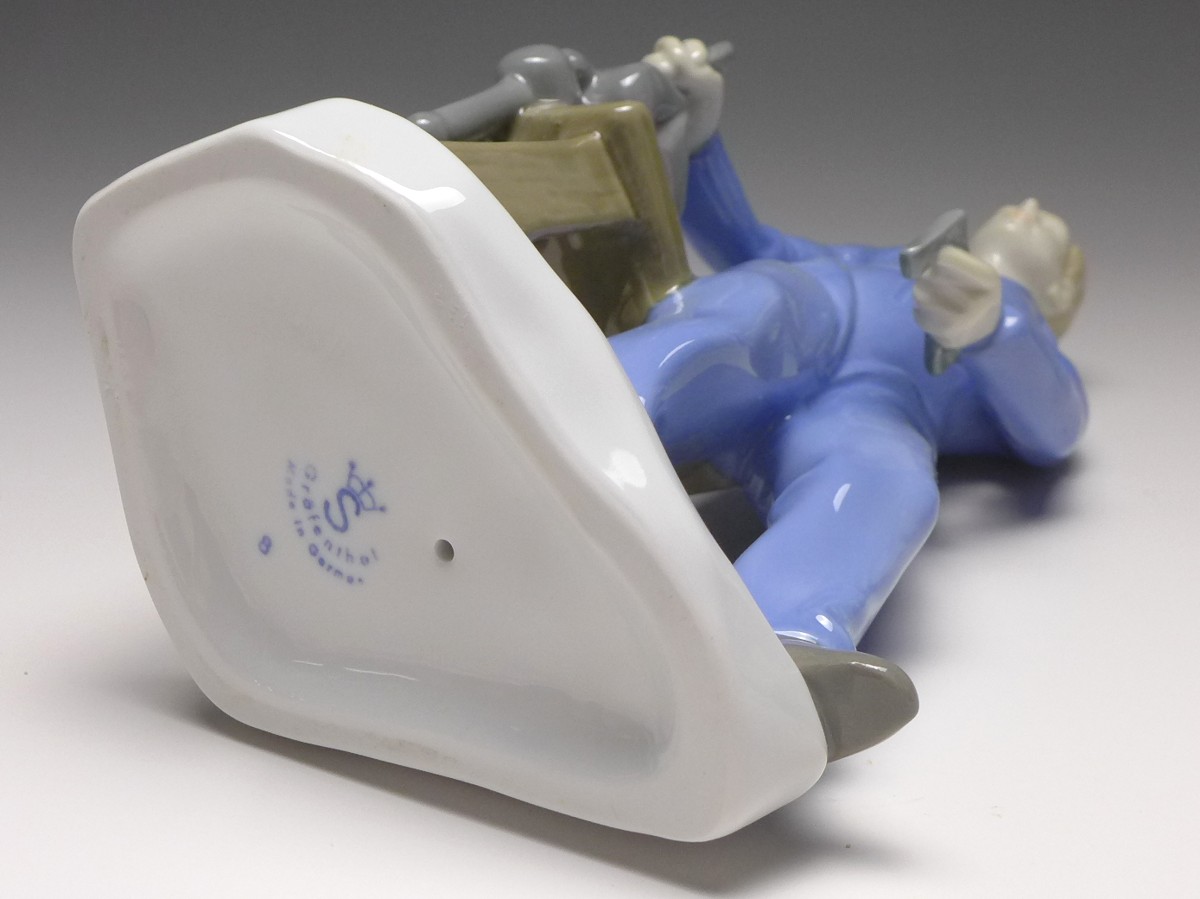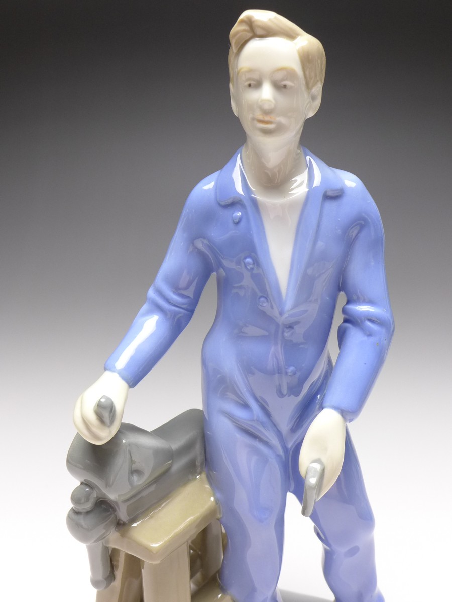Porzellanfigur Handwerker Schlosser, Unterglasurdekor. Gräfenthal / Thüringen, Marke im Boden. Sehr guter Zustand. Maße: ca. H: 24 cm Der Artikel unterliegt der Differenzbesteuerung nach § 25a USTG. Die MwSt. wird daher nicht ausgewiesen.