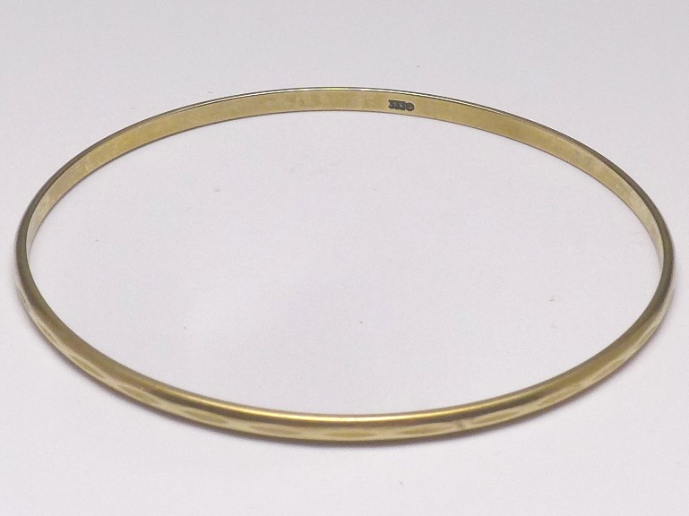 Armreif, 8 k, 333er GG Gelb Gold gepunzt, feines Dekor. Guter gebrauchter Zustand. ca. D: 65 mm, B: 2,9 mm, Gewicht 8,38 g