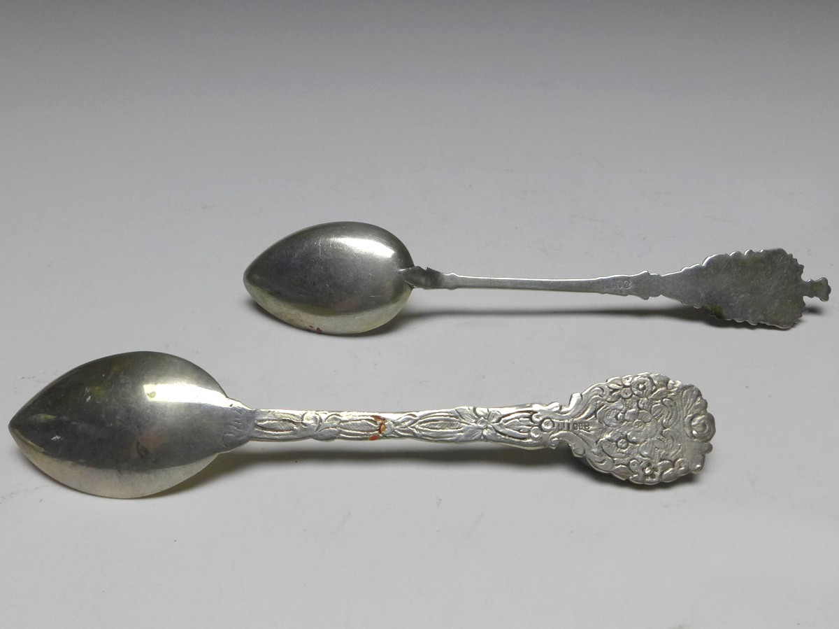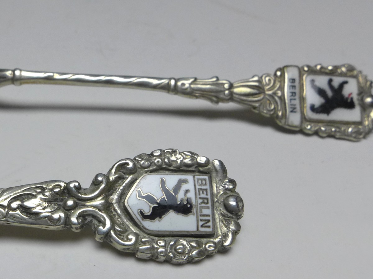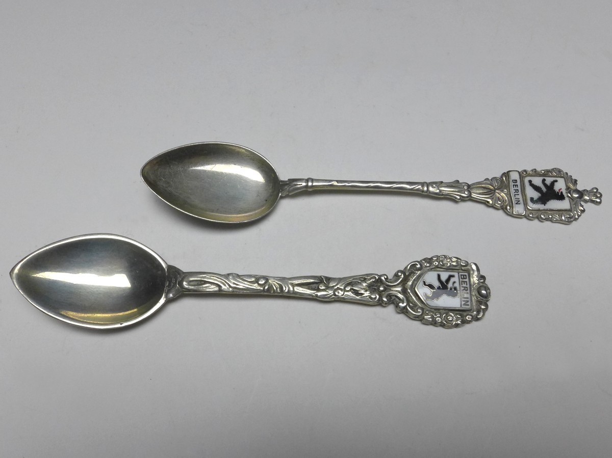 2x Mokkalöffel, Griff Dekor Berliner Bär, Berlin, 800er Silber, gepunzt. Alters- und Gebrauchsspuren. Guter gebrauchter Zustand.