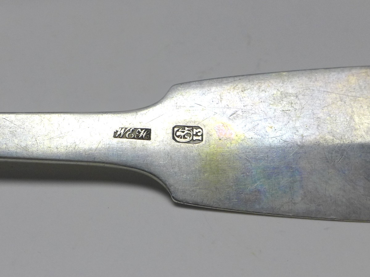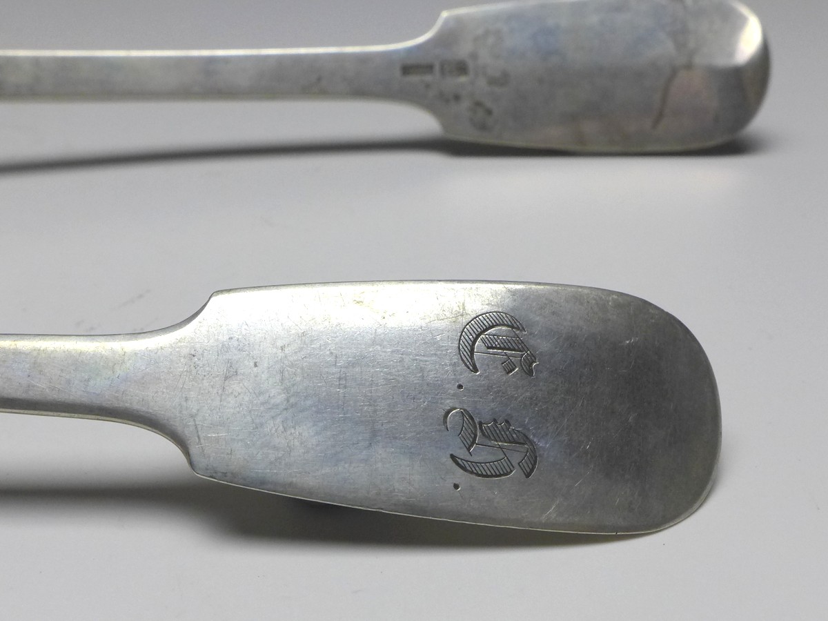 2x Suppenlöffel, Löffel, 19. Jh., 13 Lot | 812,5er Silber, Herstellermarke WEH, G mit schreitendem Löwe gepunzt. Griff mit Monogramm. Alters- und Gebrauchsspuren. Guter gebrauchter Zustand.