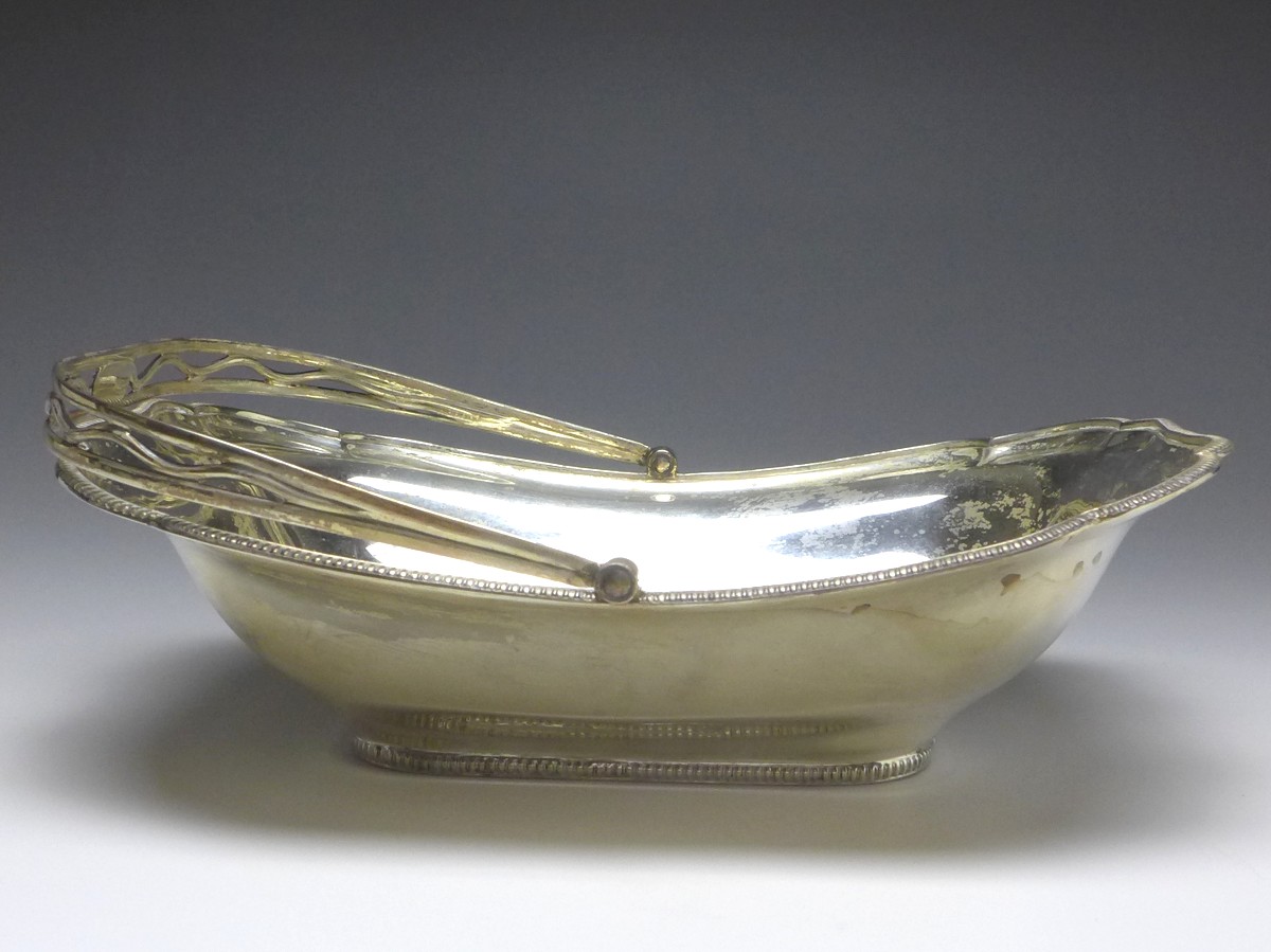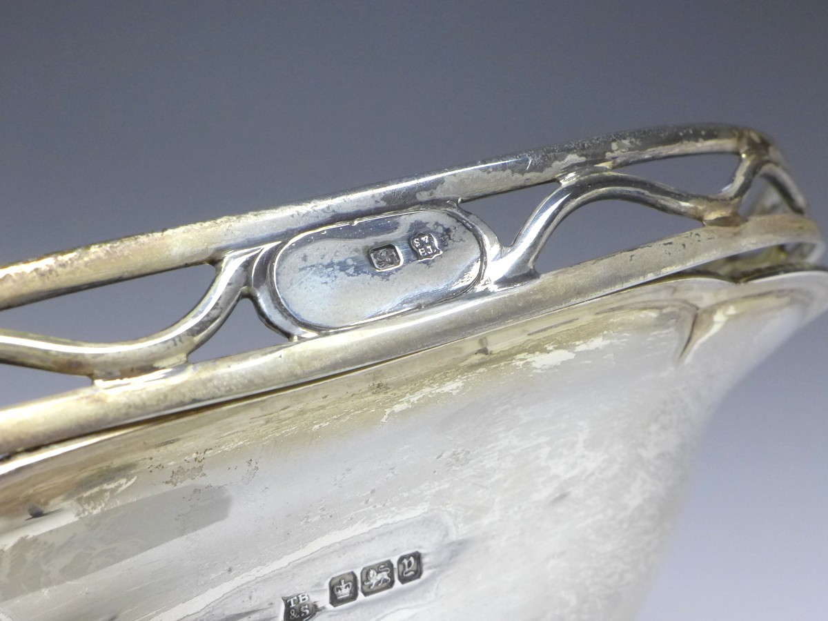 eckige Schale mit Henkel, England, TB&S, Sheffield, 1916, 925er Silber, Sterling Silber, punziert. Geschwungene Form, Randverzierungen, Henkel mit Durchbruch. Alters- und Gebrauchsspuren, kleine Beulen. Guter gebrauchter Zustand.