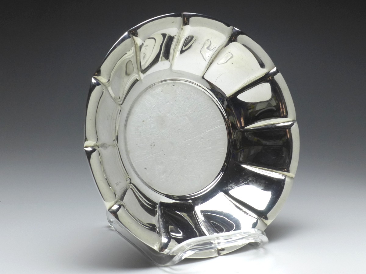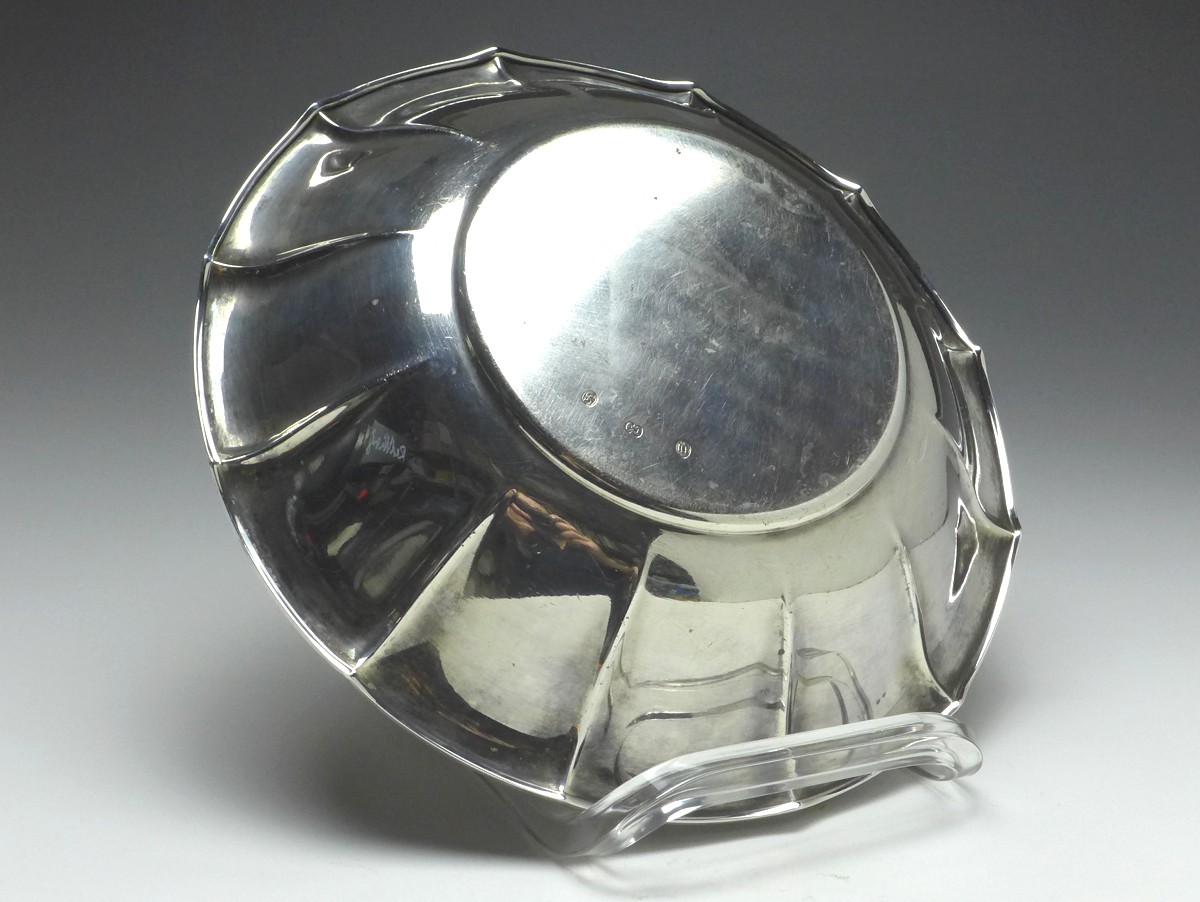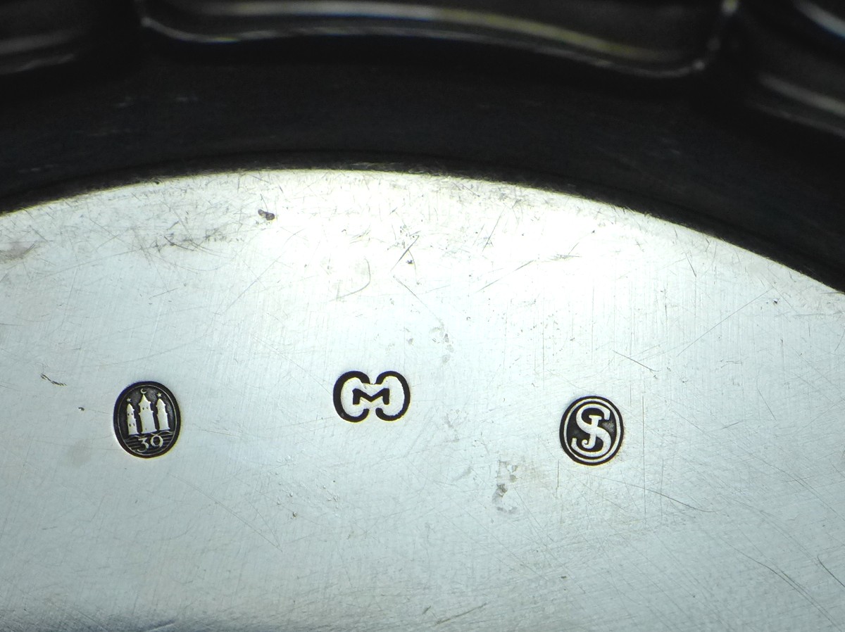 runde Schale, Gebäckschale, 830er Silber, punziert Dänemark, 1930, Punze Beschaumeister JS für Johannes Siggaard (tätig 1932-1960), CM Carl M. Lohr. Geriefter Rand. Alters- und Gebrauchsspuren. Guter gebrauchter Zustand.