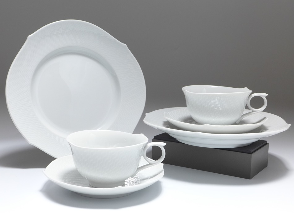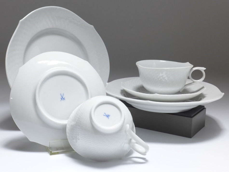 Teegedeck Set für 2 Personen. Meissen, 1. Wahl. Weiß glasiert. Schwertermarke im Boden. Neu.