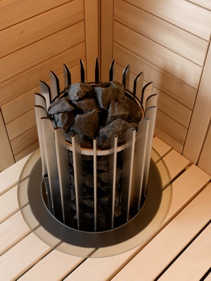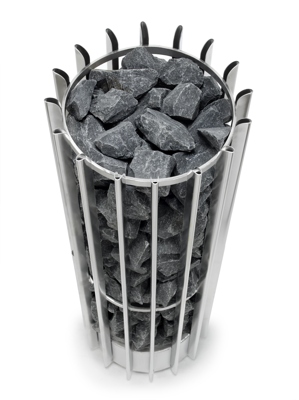 Der Rocher fasst 100 kg Saunasteine in einem robusten Becken aus gebürstetem Stahl, schwere Ausführung mit einem Gesamtgeicht von 21 kg! Die Wärme strahlt gleichmäßig in alle Richtungen ab. Er kann aufgestellt werden in einer Ecke oder an der Wand oder mit einem Stahl- oder Glaskragen in den Saunabänken befestigt werden. Dies ermöglicht auch eine Beleuchtung von unten.Der spezielle Stahl der Rohrheizkörper ermöglicht die effizienteste Erwärmung der Saunaluft.